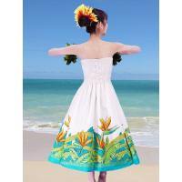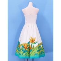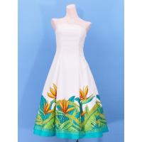 ハワイアンファブリックを使用した高品質なムームーです。ストラップレスの優美でエレガントなフラドレスです。