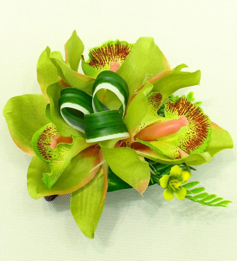 フラダンス シンビジウム ヘアクリップ イエローグリーン 3230