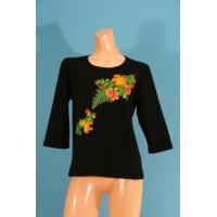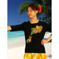 フラダンス 7分袖 Tシャツ S ハイビスカス&レフア ブラック 883sb