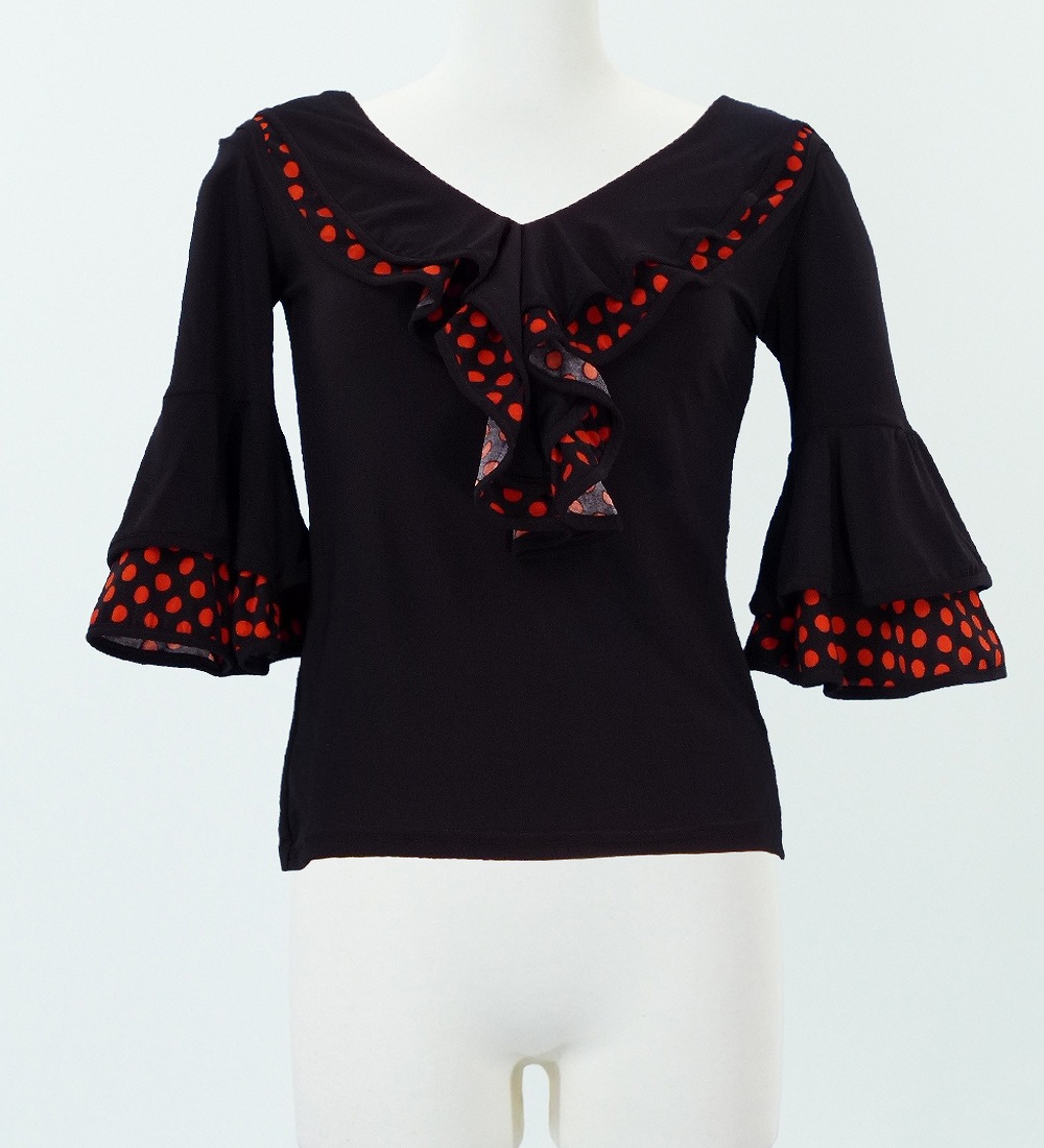 フラメンコ 水玉フリル ブラウス オレンジ LLサイズ 884oLL