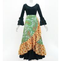 フラメンコ 巻きスカート ローズ×水玉 グリーン×オレンジ Fサイズ FMS-6