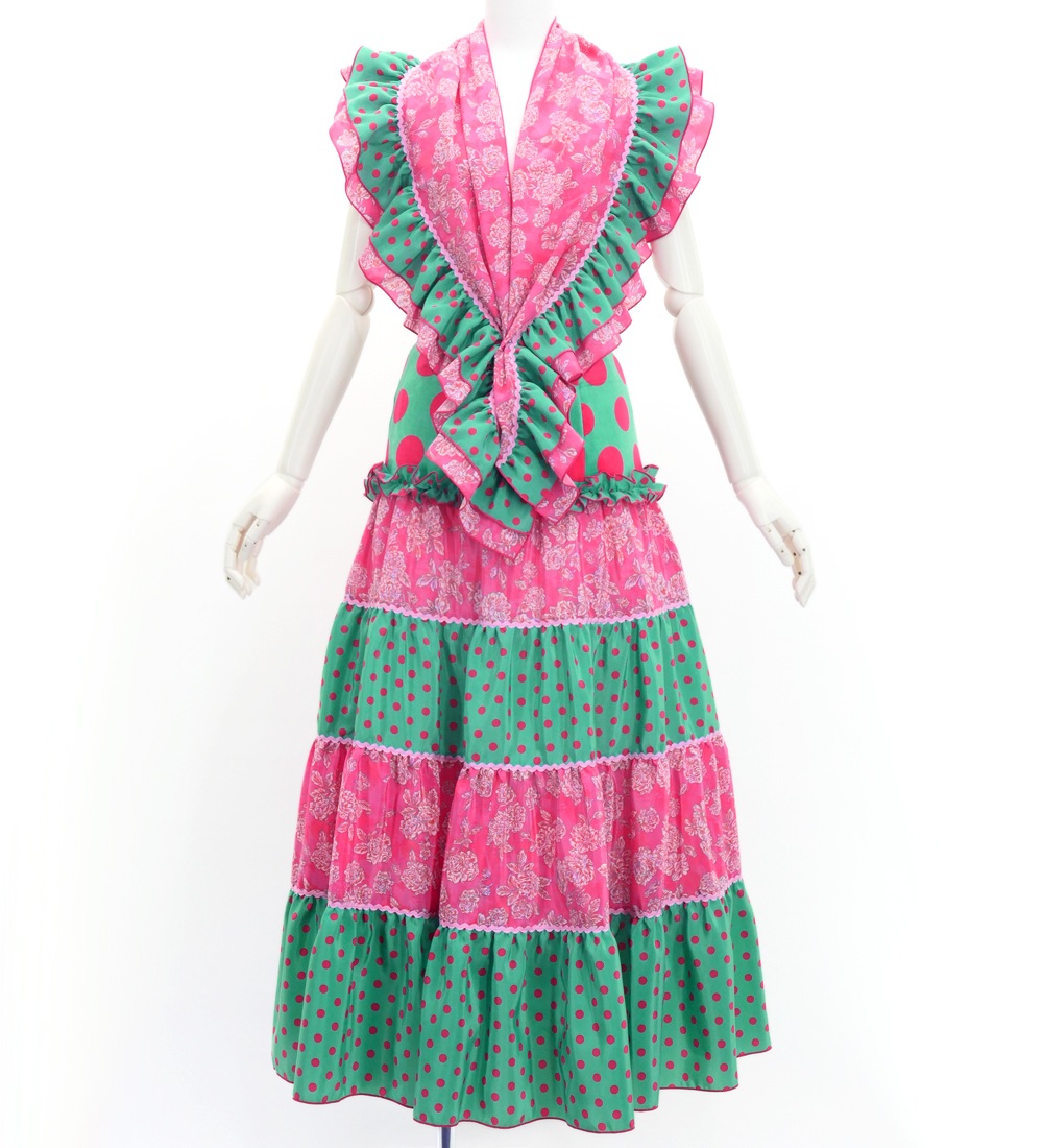 emikaオリジナルプリント生地を使用した2段のフリルが華やかなピキージョとティアードファルダのセットです。