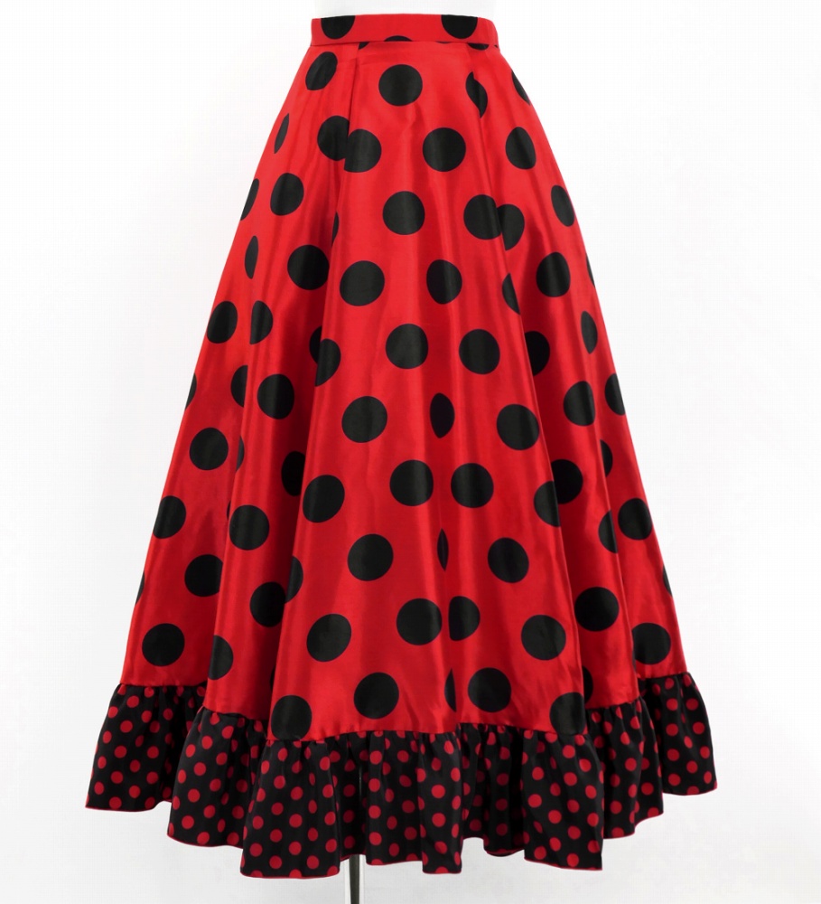 フラメンコ フリル ロングサーキュラースカート 水玉 レッド×ブラック S-Lサイズ FS-1