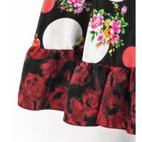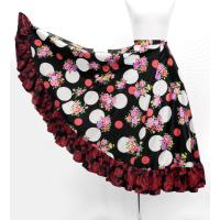 フラメンコ フリル ロングサーキュラースカート ブーケ×水玉 ブラック&レッド S-Lサイズ FS-12