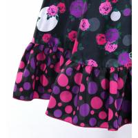 フラメンコ フリル ロングサーキュラースカート ローズ×水玉 ブラック×ピンク S-Lサイズ FS-13