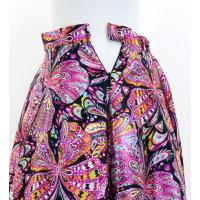 emikaオリジナルプリントのつやのあるシャンタン生地を使用したフリルファルダです。