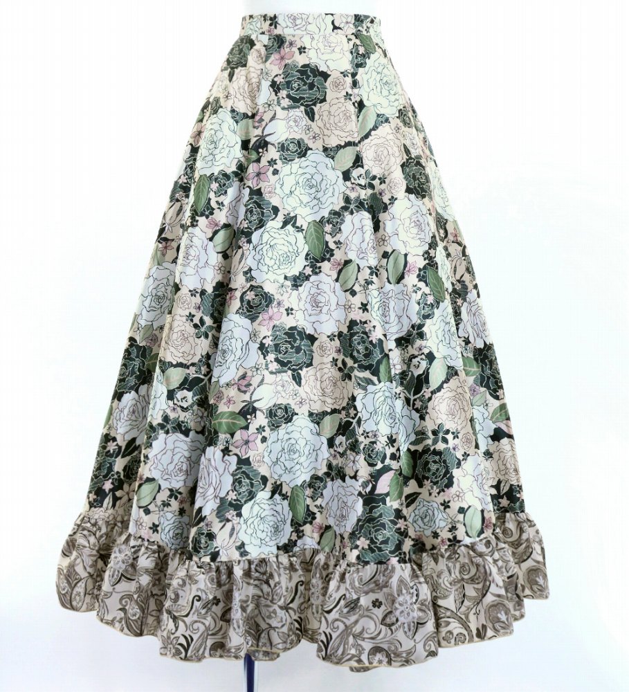 フラメンコ フリル ロングサーキュラースカート ローズ ホワイト&ベージュ S-Lサイズ FS-17