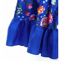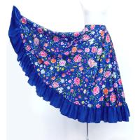 フラメンコ フリル ロングサーキュラースカート 花柄 ブルー S-Lサイズ FS-18