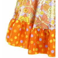 フラメンコ フリル ロングサーキュラースカート モダンフラワー ブルー×オレンジ S-Lサイズ FS-21