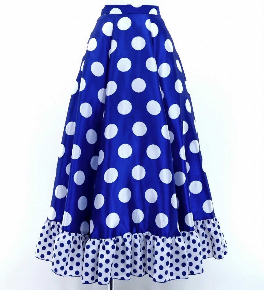 フラメンコ フリル ロングサーキュラースカート 水玉 ブルー×ホワイト S-Lサイズ FS-5