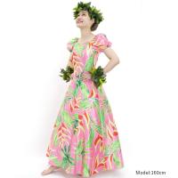 ハワイアンプリント シャンタン生地の日本製フラドレス J2687pi