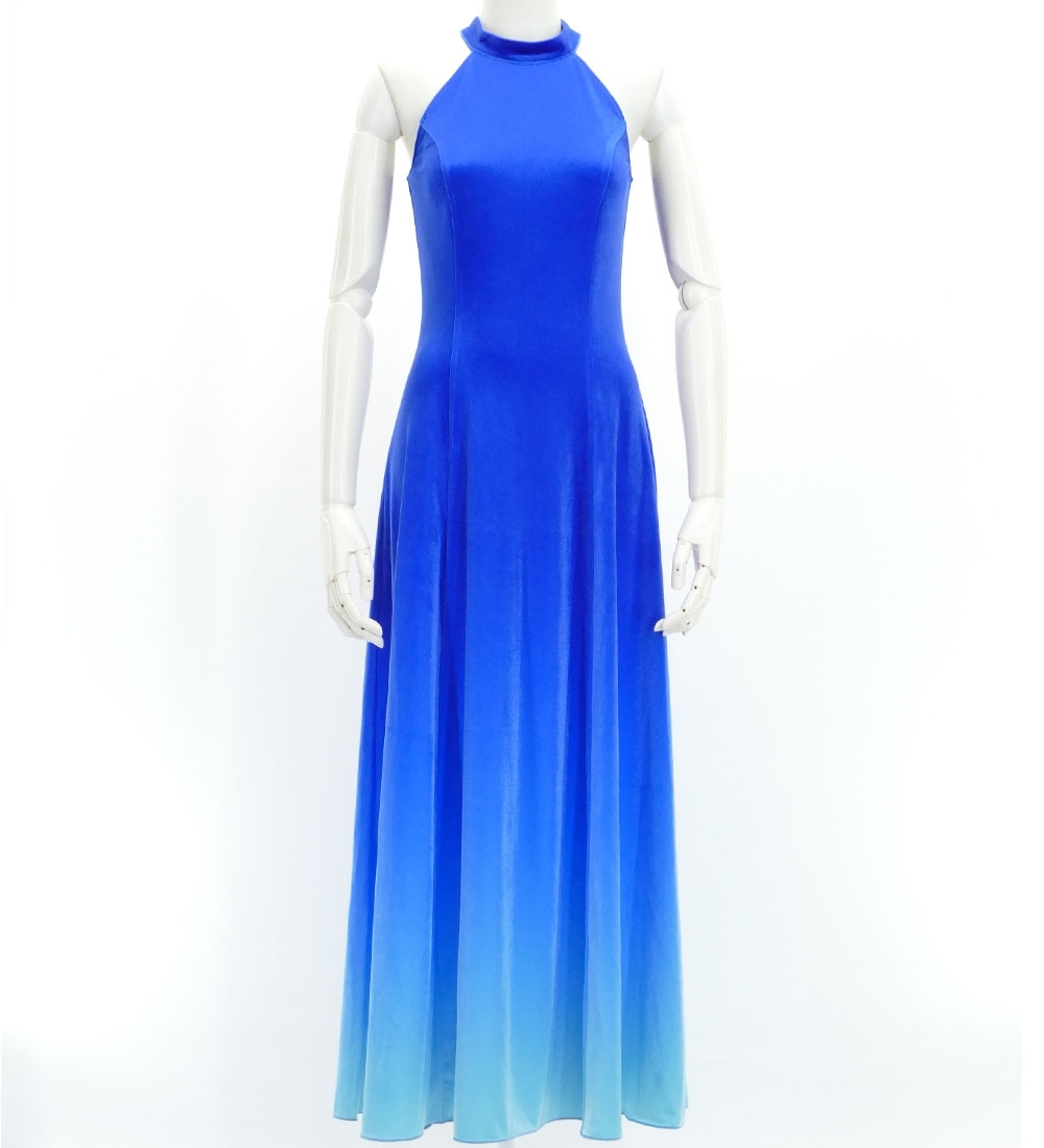 フラドレス [S・M・Lサイズ] ベロア アメリカンスリーブ ロング丈 ブルー×ブルー J2711blbl
