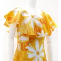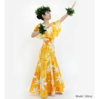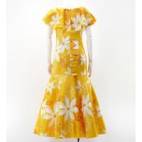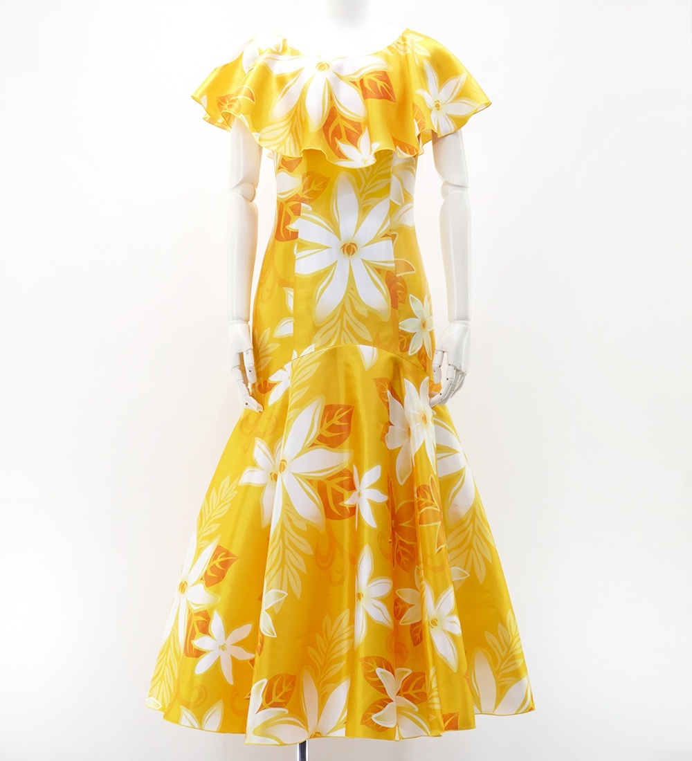 シャンタン生地のロング丈ドレス ハワイアンプリント フラドレス日本製 J2843ye