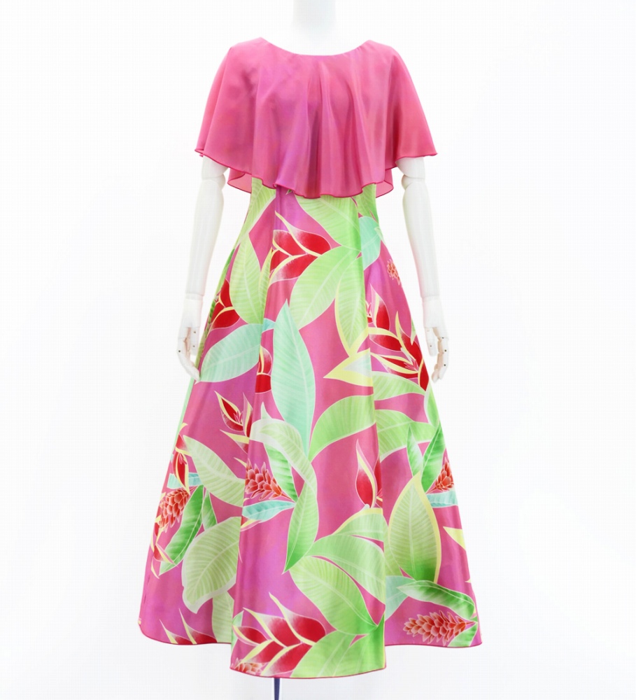 フラドレス [S・M・Lサイズ] ロング丈 ケープドレス ヘリコニア ピンク J2873pi