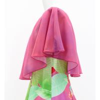 上品な光沢をもつヘリコニア柄のシャンタンドレスに色を合わせたドレス地模様のコシボ生地ケープの