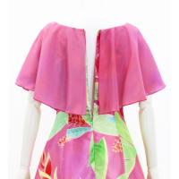 シャンタン生地のロング丈ケープドレス ハワイアンプリント フラドレス日本製 J2873pi