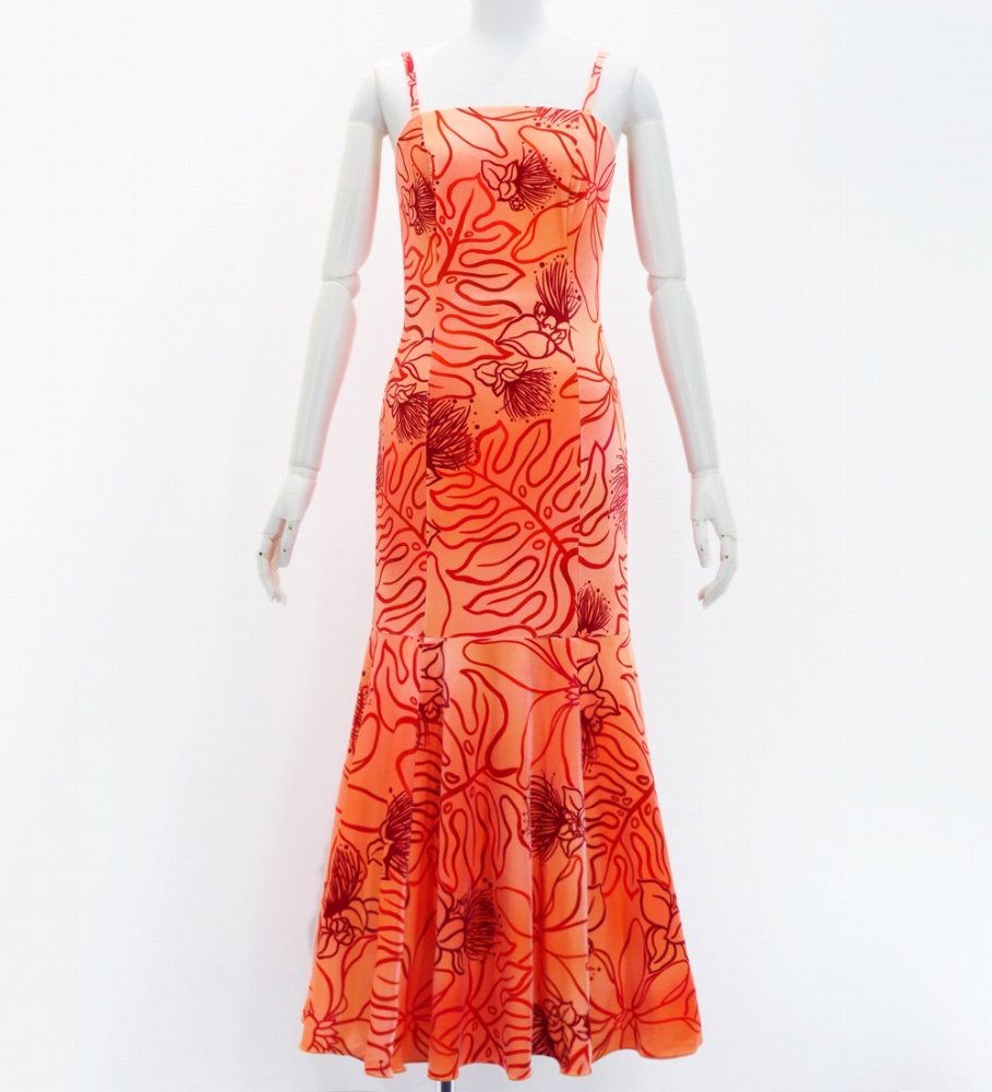 高級ベルベット生地 ロング丈 フラドレス ハワイアンプリント 日本製 J2875orrd