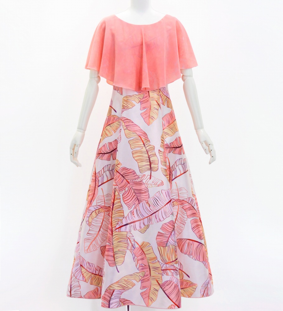 フラドレス [S・M・Lサイズ] ロング丈 ケープドレス バナナリーフ ピンク J3036pi
