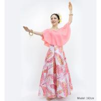 シャンタン生地のロング丈ケープドレス ハワイアンプリント フラドレス日本製 J3036pi