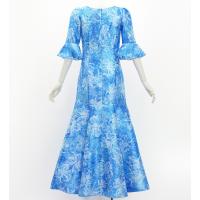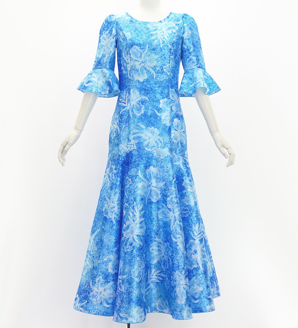 フラダンス [S・M・Lサイズ] フリル袖 シャンタンドレス オーキッド ブルー J3153bl