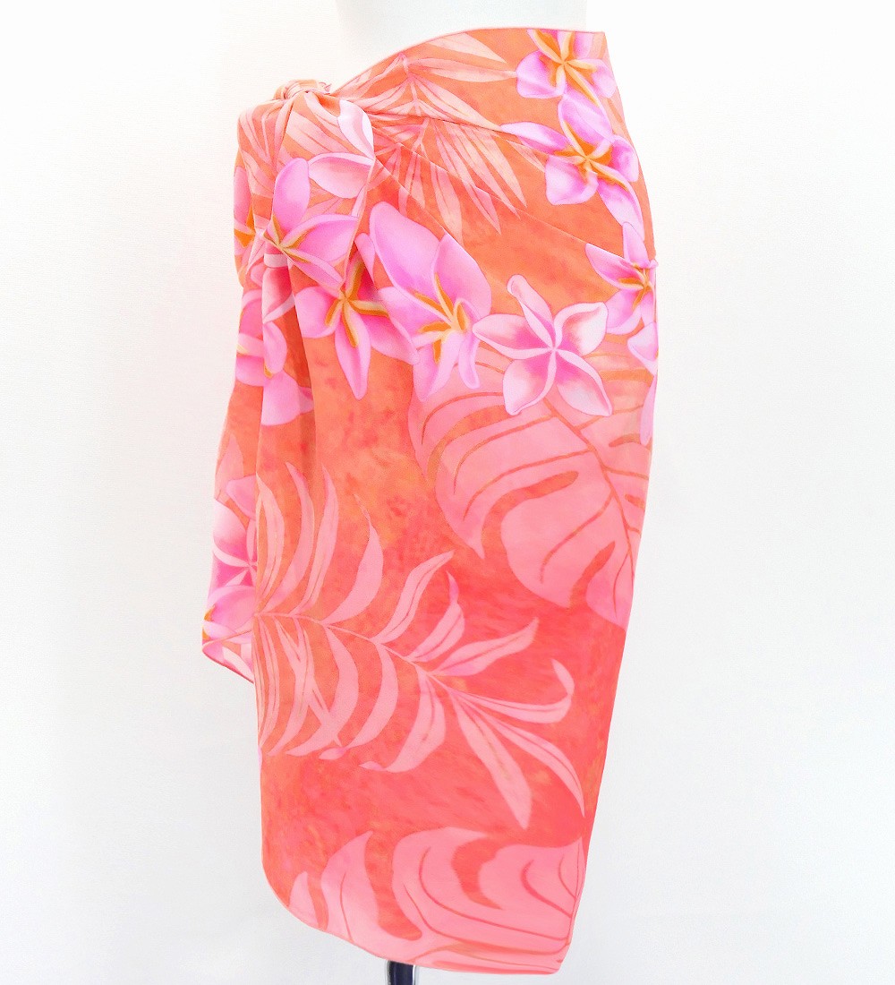 オリジナルプリントコシボ生地 ショート パレオ プルメリアレイ ピンク J3225-5