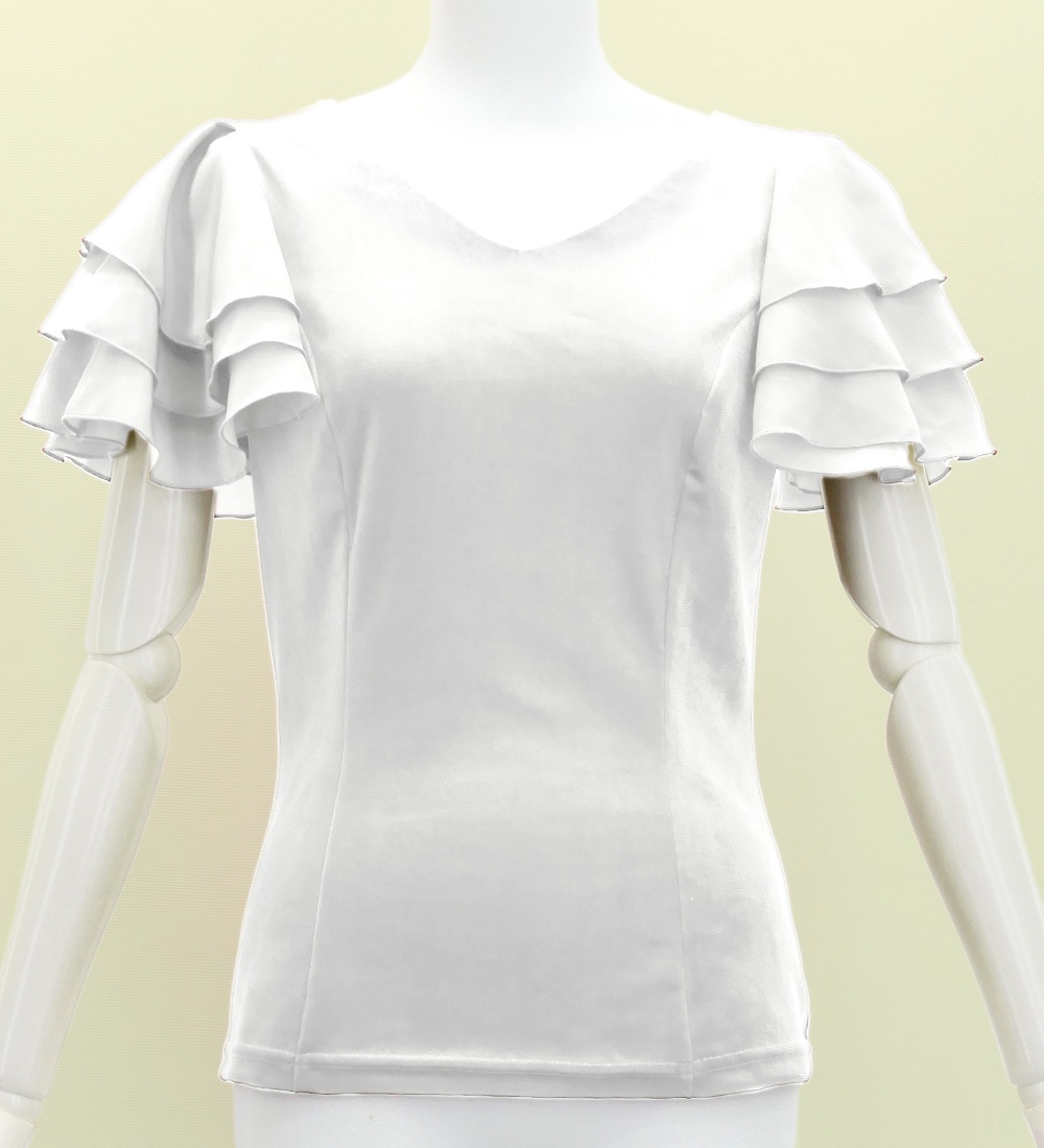 フラメンコ 選べる襟ぐり 3段フリルスリーブ ブラウス ホワイト S-Lサイズ J3229wh