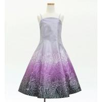 シックなグラデーションカラーで、モンステラ×カヒコ柄ミディ丈フラドレスをご用意しました。