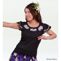 フレンチフリル袖にフロントとバックにティアレの刺繍をデザインした華やかなフラTシャツです。