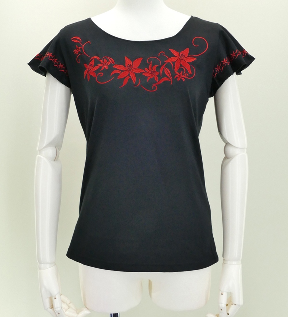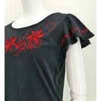 フレンチフリル Tシャツ XL 刺繍レッド リリィ ブラック KD4rbXL
