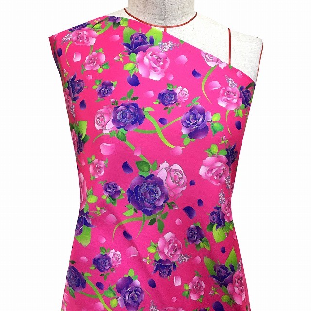 フラメンコ生地 ローズ柄 コシボ生地 ピンク×パープル KF-009-PIPU-K 3-5営業日後発送