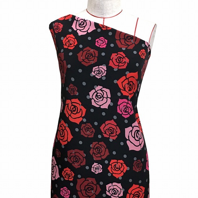 フラメンコ生地 ローズ柄 コシボ生地 ブラック KF-013-BK-K 3-5営業日後発送