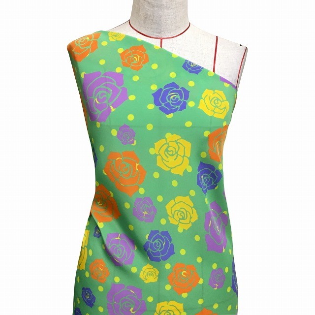 フラメンコ生地 ローズ柄 コシボ生地 グリーン KF-013-GR-K 3-5営業日後発送
