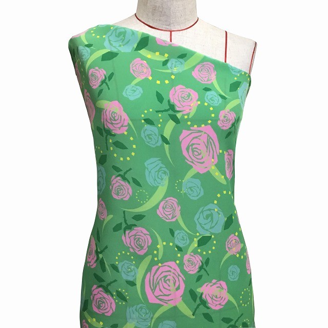 フラメンコ生地 ローズ柄 コシボ生地 グリーン KF-015-GR-K 3-5営業日後発送