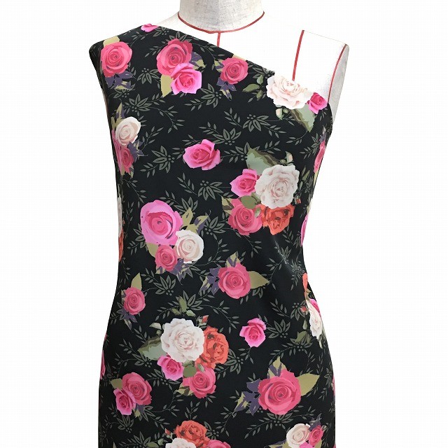 フラメンコ生地 ローズ柄 コシボ生地 ブラック KF-017-BK-K 3-5営業日後発送