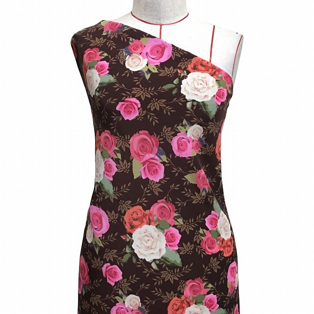 フラメンコ生地 ローズ柄 コシボ生地 ブラウン KF-017-BR-K 3-5営業日後発送