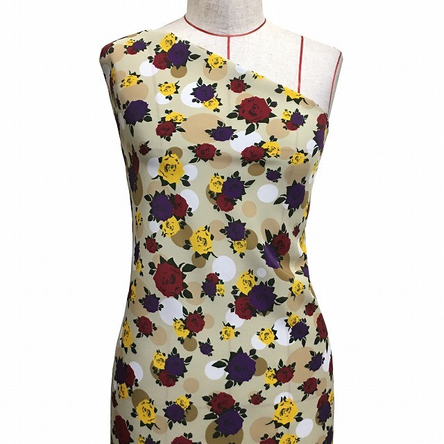 フラメンコ生地 ローズ×水玉柄 コシボ生地 ベージュ KF-019-BE-K 3-5営業日後発送