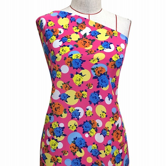 フラメンコ生地 ローズ×水玉柄 コシボ生地 ピンク KF-019-PI-K 3-5営業日後発送