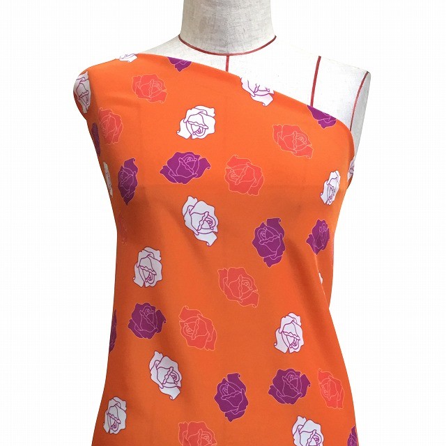 フラメンコ生地 ローズ柄 コシボ生地 オレンジ KF-023-OR-K 3-5営業日後発送