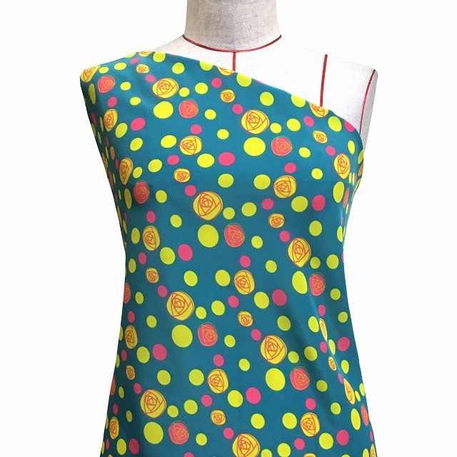 フラメンコ生地 ローズ×水玉柄 コシボ生地 グリーン KF-029-GR-K 3-5営業日後発送