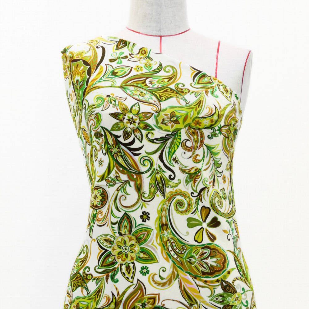 フラメンコ生地 ペイズリー柄 コシボ・シャンタン・ストレッチベロア選べる生地 イエロー KF-063-YE 3-5営業日後発送