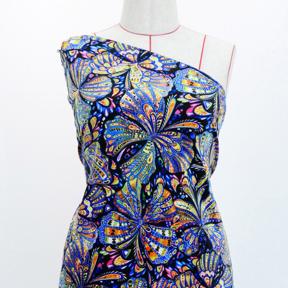 フラメンコ生地 バタフライペイズリー柄 コシボ・シャンタン・ストレッチベロア選べる生地 ブルー KF-071-BL 3-5営業日後発送