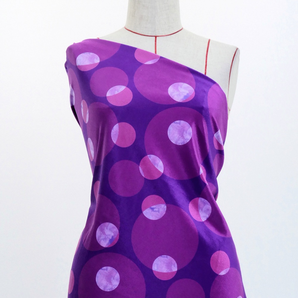 フラメンコ生地 水玉柄 コシボ・シャンタン・ストレッチベロア選べる生地 パープル KF-083-PU 3-5営業日後発送