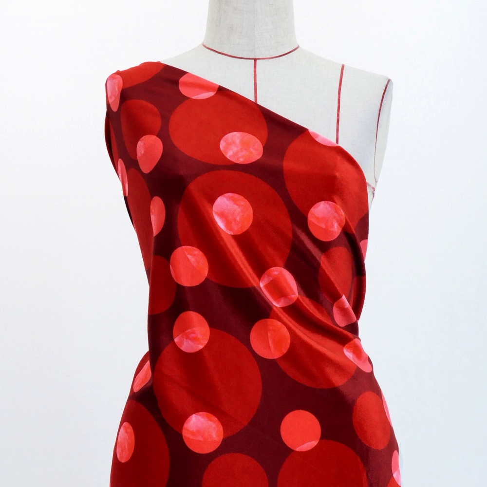 フラメンコ生地 水玉柄 コシボ・シャンタン・ストレッチベロア選べる生地 レッド KF-083-RD 3-5営業日後発送