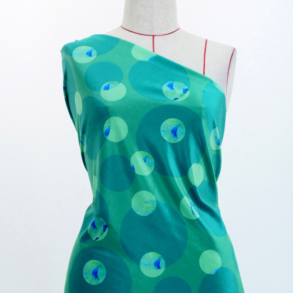 フラメンコ生地 水玉柄 コシボ・シャンタン・ストレッチベロア選べる生地 ターコイズブルー KF-083-TBL 3-5営業日後発送
