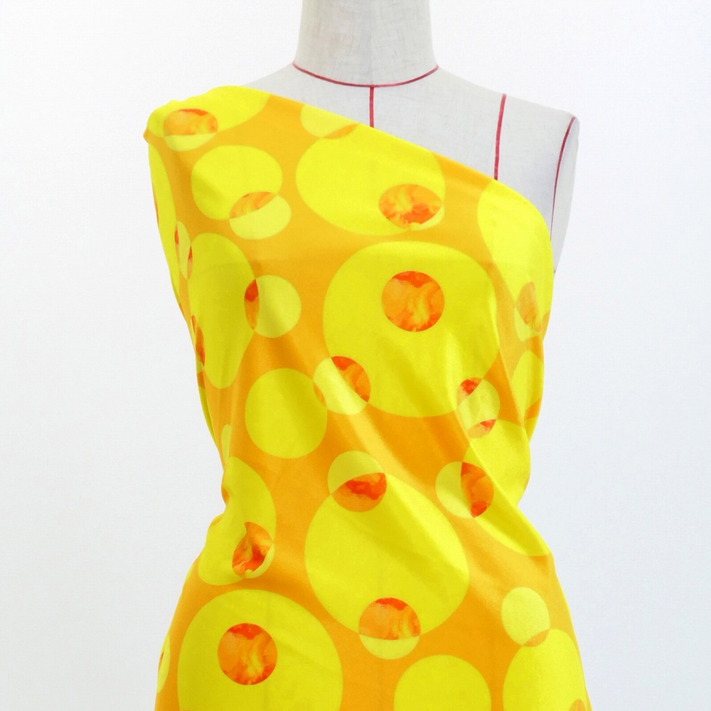 フラメンコ生地 水玉柄 コシボ・シャンタン・ストレッチベロア選べる生地 イエロー KF-083-YE 3-5営業日後発送