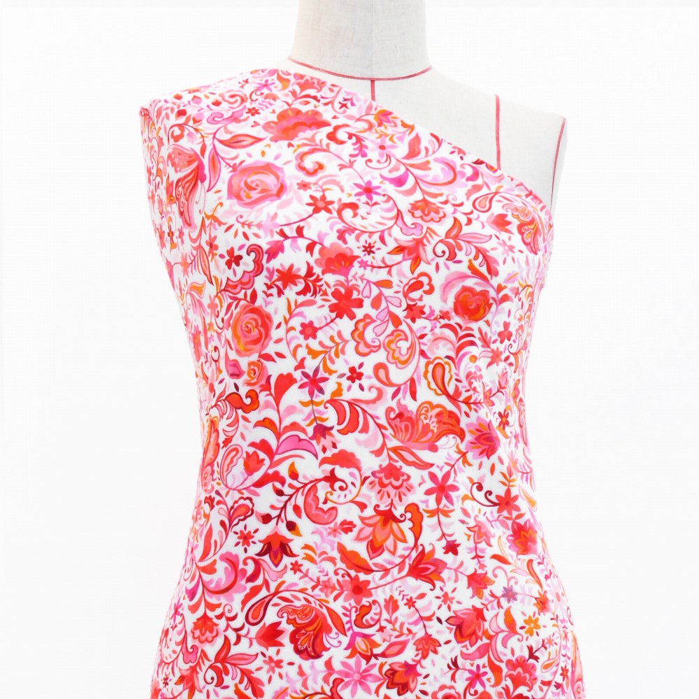 フラメンコ生地 バタフライペイズリー柄 コシボ・シャンタン・ストレッチベロア選べる生地 ホワイト×ピンク KF-085-WHPI 3-5営業日後発送