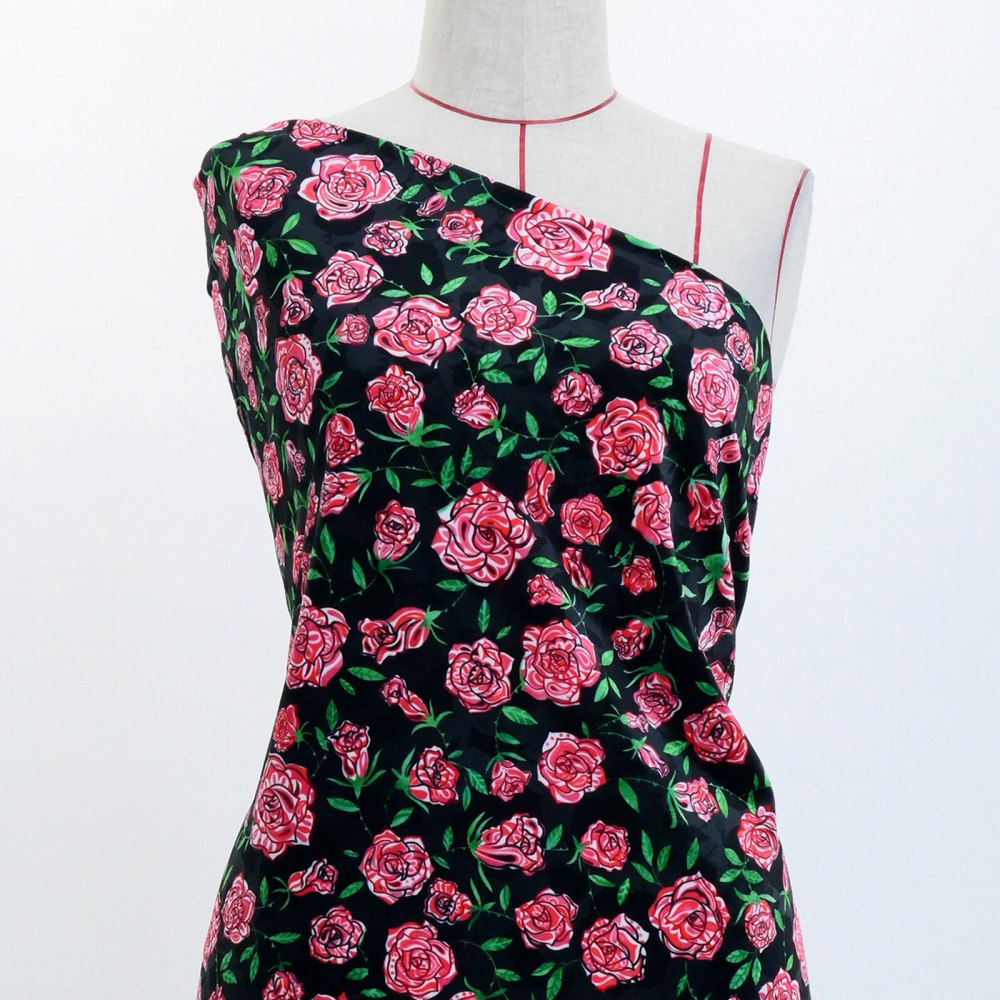 フラメンコ生地 ローズペイズリー柄 コシボ・シャンタン・ストレッチベロア選べる生地 ブラック KF-087-BK 3-5営業日後発送