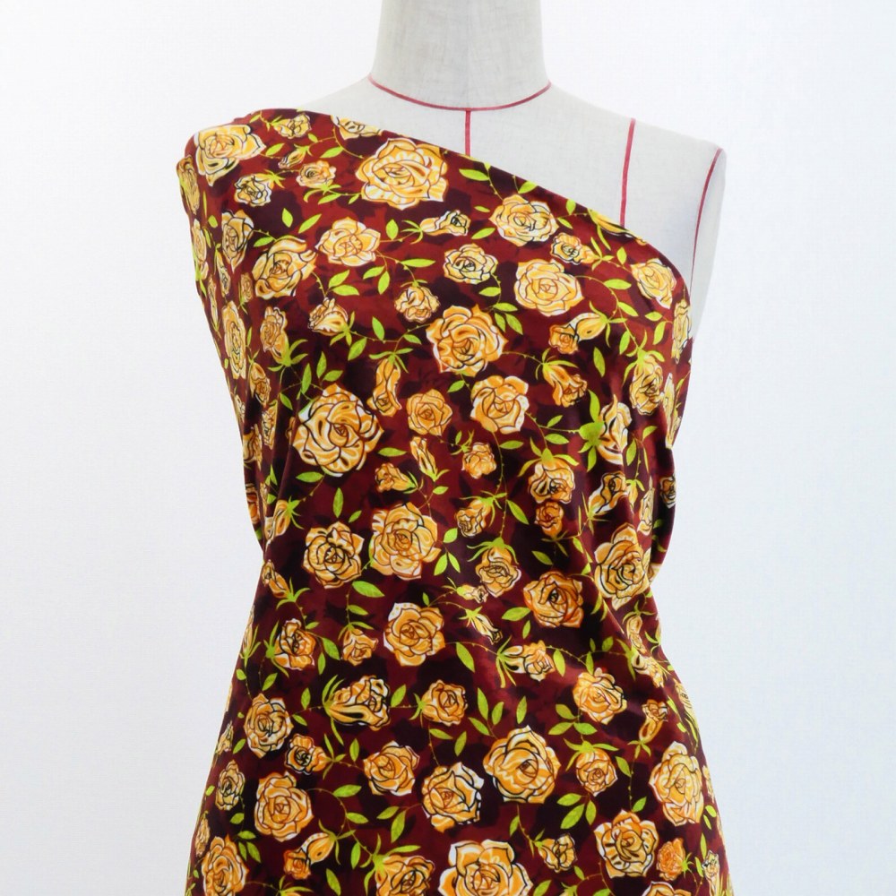 フラメンコ生地 ローズペイズリー柄 コシボ・シャンタン・ストレッチベロア選べる生地 ブラウン KF-087-BR 3-5営業日後発送