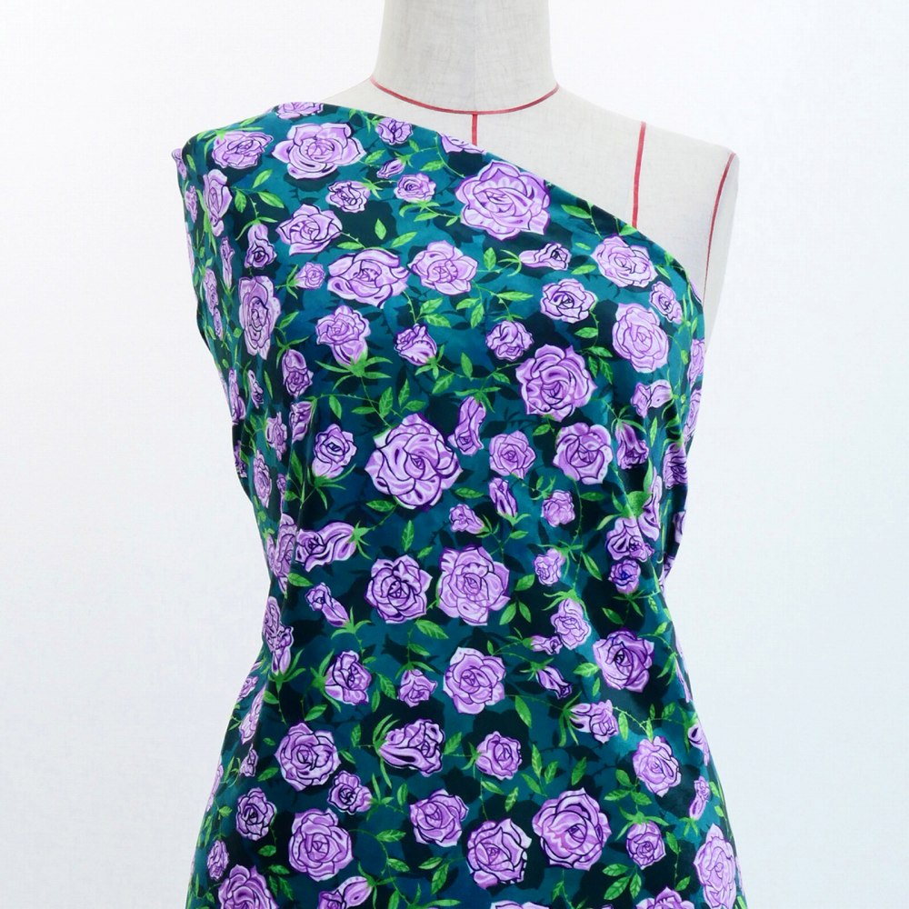 フラメンコ生地 ローズペイズリー柄 コシボ・シャンタン・ストレッチベロア選べる生地 グリーン KF-087-GR 3-5営業日後発送