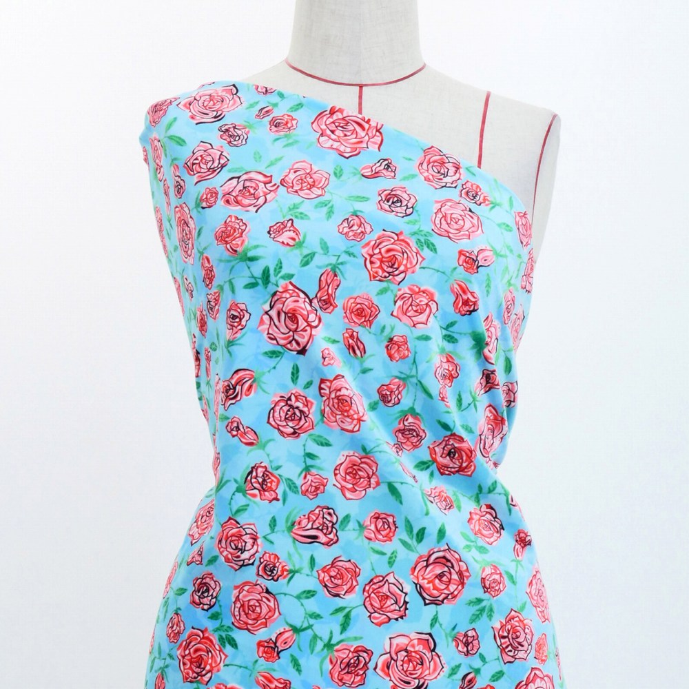 フラメンコ生地 ローズペイズリー柄 コシボ・シャンタン・ストレッチベロア選べる生地 ライトブルー KF-087-LBL 3-5営業日後発送